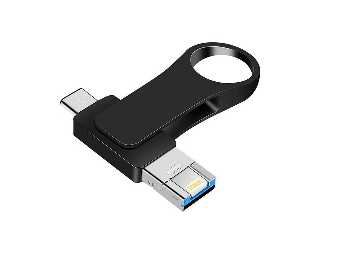Der USB C Stick bietet drei Schnittstellen in einem einzigen Gerät: USB C, USB A und Lightning (Apple). Dies macht ihn zum idealen Begleiter für alle Ihre Geräte, sei es ein MacBook, iPad, Android-Smartphone oder ein herkömmlicher USB-Anschluss. Genießen Sie maximale Kompatibilität und sparen Sie sich das Mitführen mehrerer Adapter und Kabel.