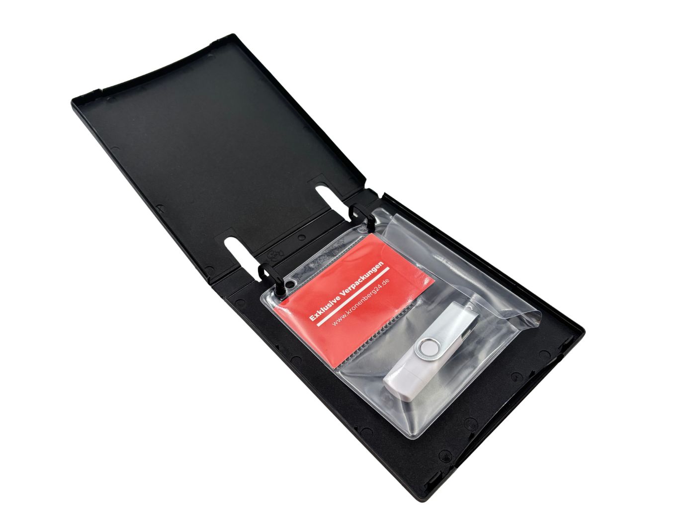USB Stick Box schwarz | mit transparenter USB Stick Hülle Einleger | für bis zu 2 USB Sticks